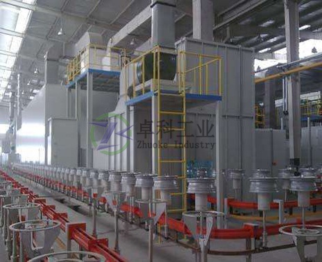 国际流行的铝轮毂输送方式,适用前处理清洗工序,根据产量不同可挂2-3个工件,清洗效果好。吊具简单适用。